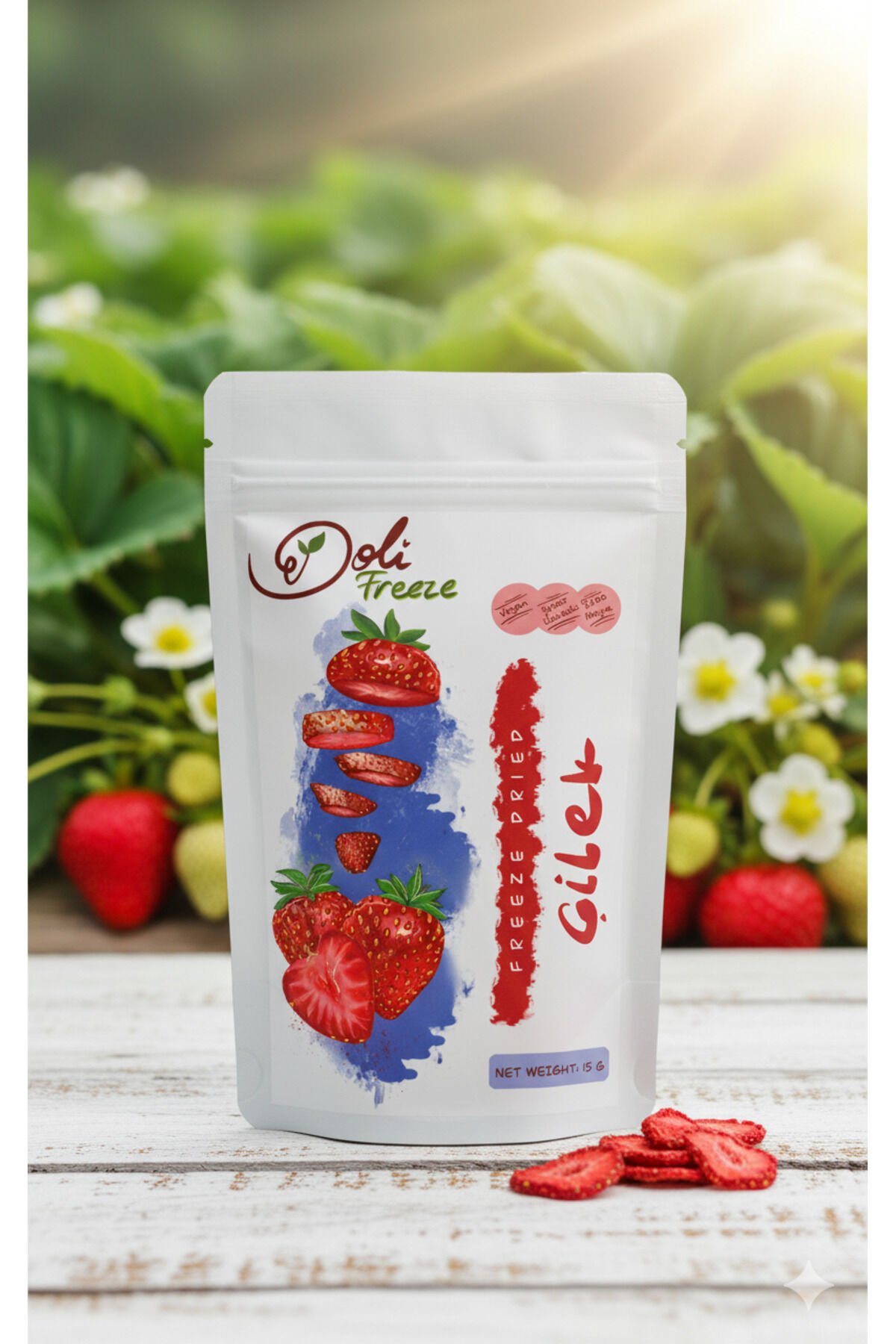 - Taze çileklerin özenle dondurularak kurutulmasıyla elde edilen bu ürün, doğal lezzetini ve besin değerini korur.; - 15 gramlık ambalajı ile pratik kullanım sunar ve yanınızda taşıyabileceğiniz ideal boyutlardadır.; - Dondurularak kurutma yöntemi sayesinde, çileklerin doğal aromasını ve tatlılığını uzun süre muhafaza eder.; - Çiğ olarak tüketilebildiği gibi, çeşitli tariflerinizde de kullanabileceğiniz çok yönlü bir atıştırmalık seçeneğidir.;