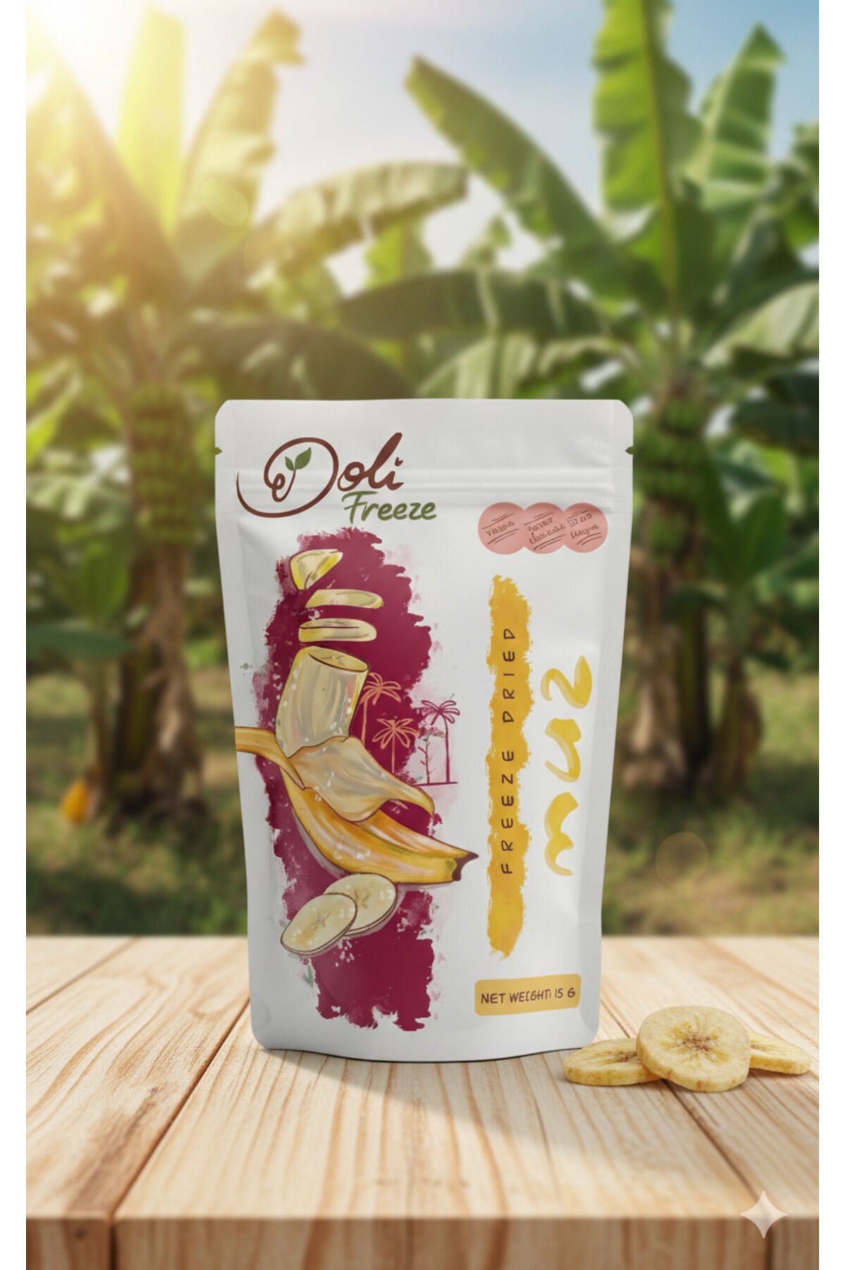 - Dondurularak kurutulmuş muz, doğal tat ve besin değerlerini koruyarak uzun süre saklanabilir.; - 20 gramlık pratik paketleme, kolay taşıma ve kullanım imkanı sunar.; - Dondurularak kurutma yöntemi sayesinde tazeliği ve aroması bozulmadan muhafaza edilir.;